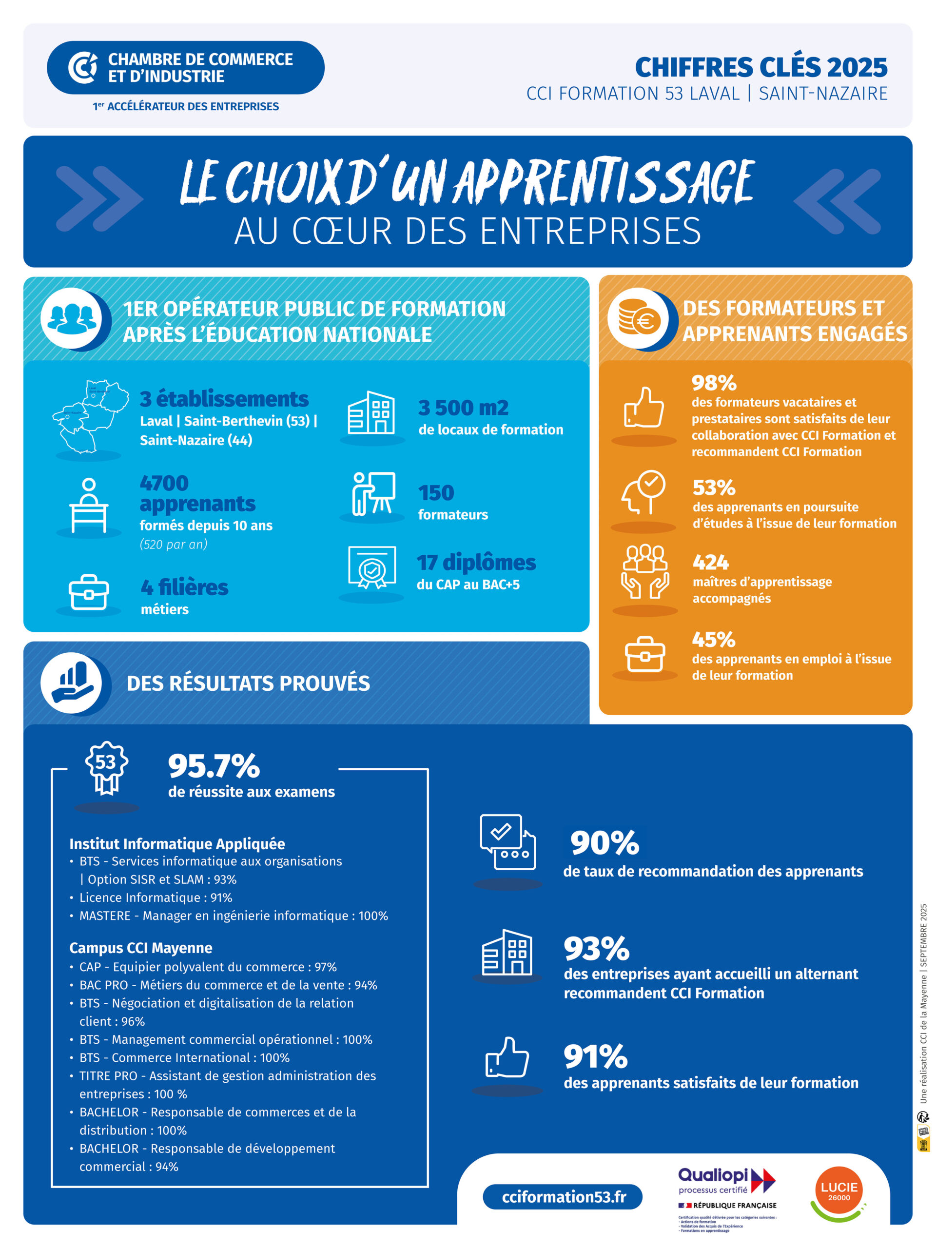Vous recherchez un Centre de Formation d’Apprenti ? La CCI de la Mayenne vous propose 4 filières de formations en alternance vous préparant à un métier et vous assurant une insertion professionnelle réussie.